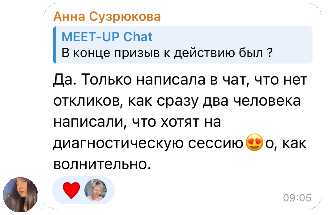 Помощь в реализации продающего сторителлинга, который прямо на MEET UP приведет тебе клиентов
